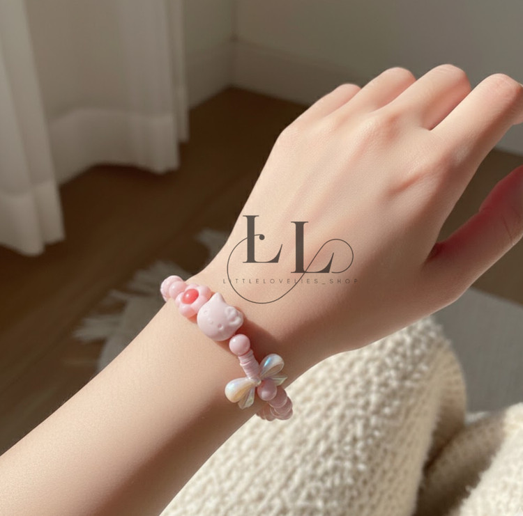 دستبند دخترانه پاستلی هلوکیتی صورتی