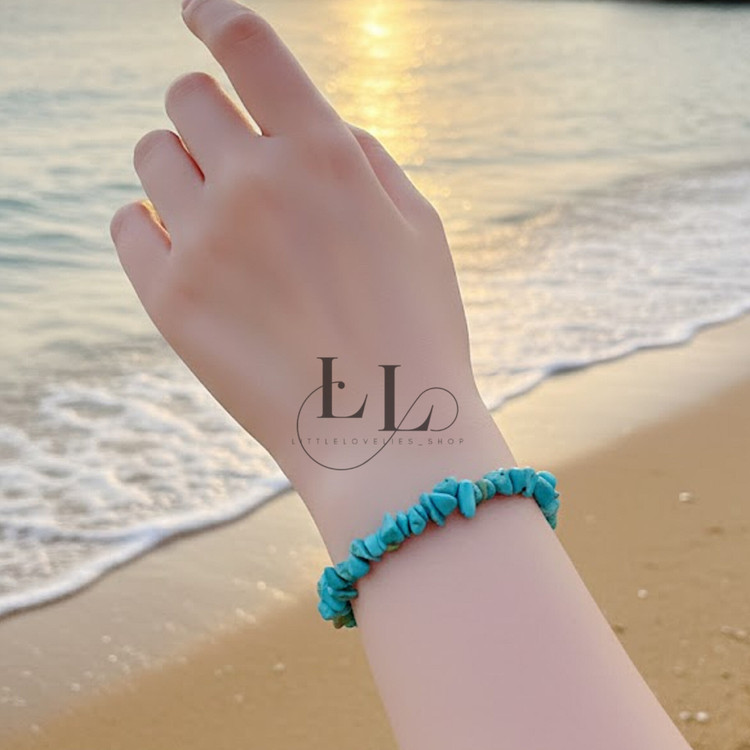 دستبند دخترانه آبی با سنگ فیروزه ای