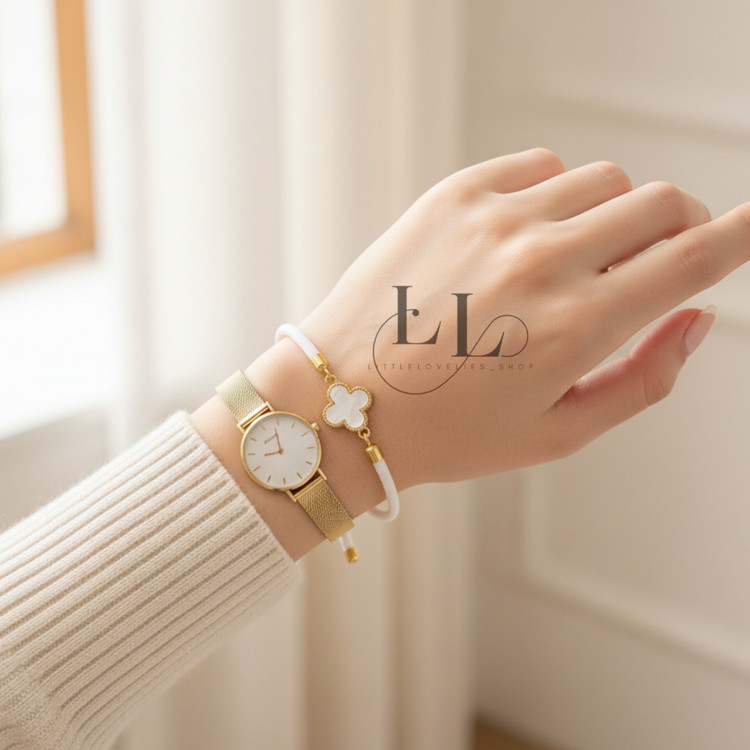 طراحی کلاسیک برگرفته از برند معروف Van Cleef تمیز و نماد گل چهارپر، باعث شده این دستبند هم برای استایل روزمره و هم برای مهمونیها عالی باشه.