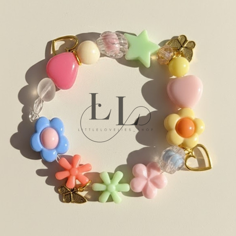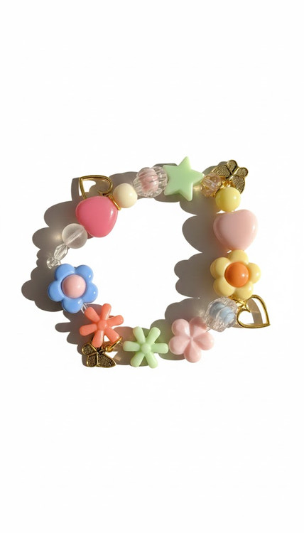 دنیای رنگارنگ شادی در دستان کوچولوی شما! این دستبند فانتزی و جذاب، با طرحها و رنگهای شاد پاستلی، هر دختری را عاشق خود میکند. مجموعهای از مهرههای پلاستیکی باکیفیت و ایمن در اشکال گلهای دوستداشتنی، قلبهای صورتی و ستارههای شاد، در کنار مهرههای کریستالی و مرواریدی، این دستبند را به یک اثر هنری کوچک تبدیل کرده است.
