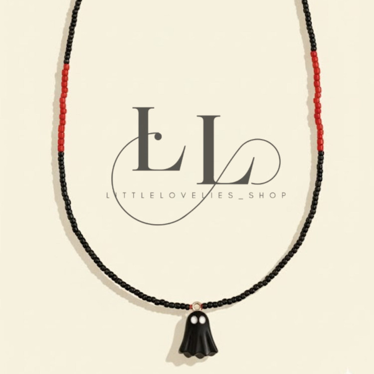این گردنبند با ترکیب خاص مهرههای مشکی و بخشهای کوچک قرمز، یک کنتراست جذاب ایجاد کرده است. اما ستارههای اصلی، پلاکهای فانتزی آن هستند: