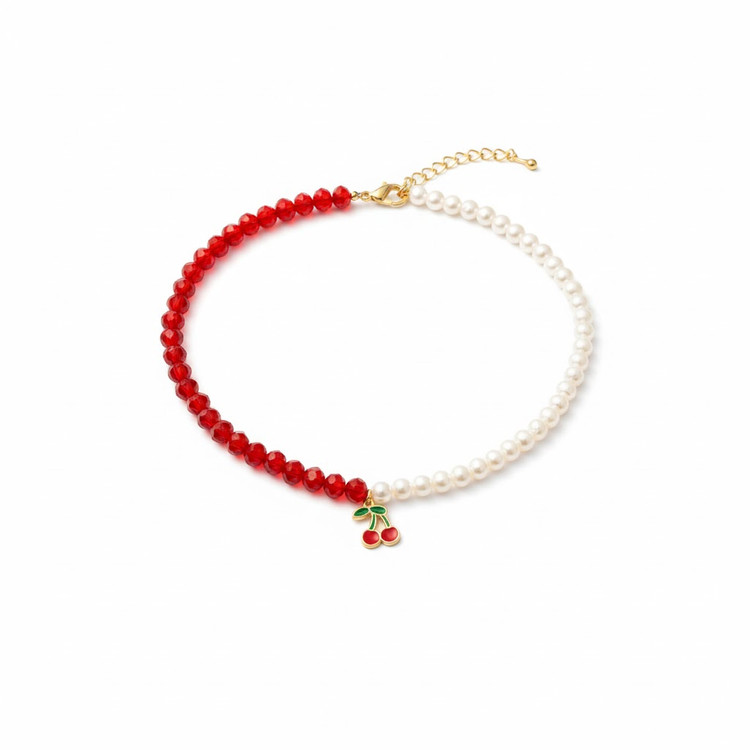 گردنبند آویز گیلاس با ترکیب درخشان مروارید و کریستال قرمز، یکی از خاصترین اکسسوریهای دخترانه است.