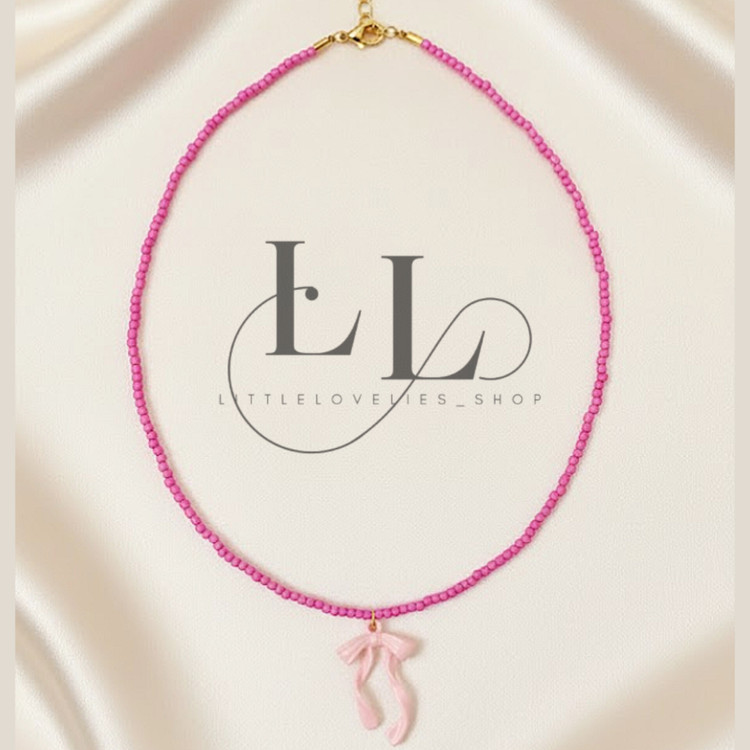 گردنبند صورتی با آویز پاپیون، انتخابی خاص برای دخترای ظریف و خوشاستایل 💖