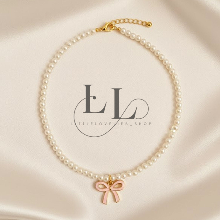 گردنبند مروارید ریز با آویز پاپیون ترکیبیه از لطافت و استایل کلاسیک 💫