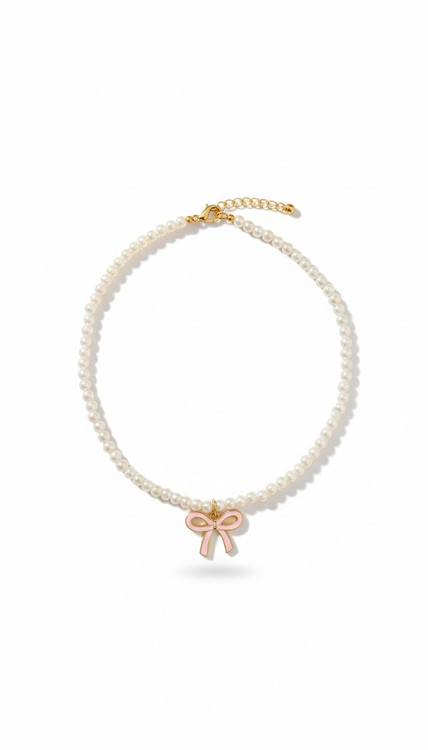 مرواریدهای ظریفش روی گردن برق خاصی دارن و پاپیون آویز، بهش حالت فانتزی و دخترونه میده.