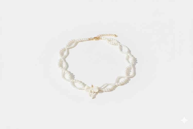 زیبایی در بافت و ظرافت در آویزاین گردنبند مرواریدی خاص، با بافت زنجیرهای و در هم تنیده از مرواریدهای مرغوب طراحی شده است تا جلوهای متفاوت از یک چوکر کلاسیک را به شما ارائه دهد. آویز پاپیون در مرکز، حس لطافت و فانتزی بودن را به آن میافزاید. قفل محکم و طلاییرنگ این محصول، استفاده آسان و امنیت آن را تضمین میکند. میتوانید این گردنبند را برای مهمانیها، قرارهای دوستانه یا حتی تکمیل استایلهای ساحلی خود استفاده کنید.