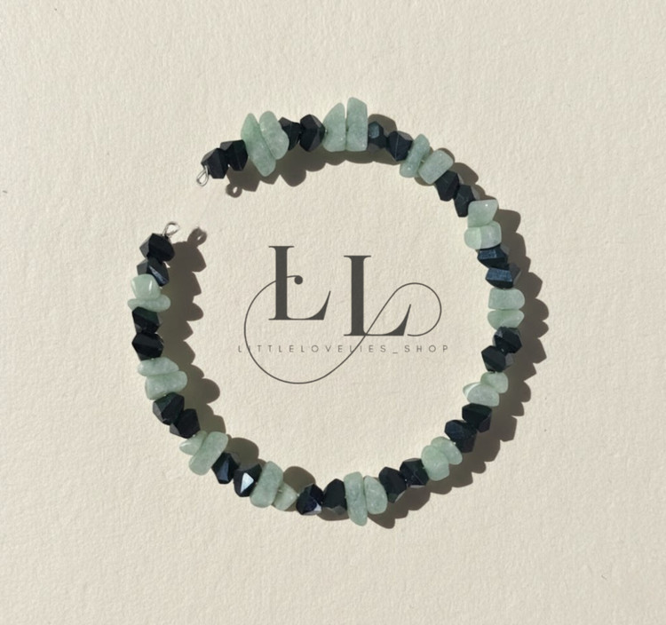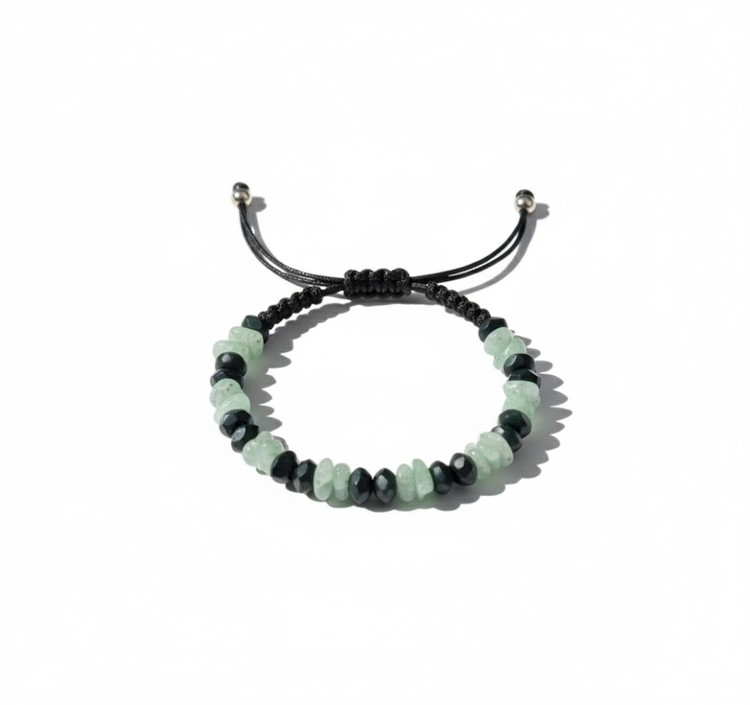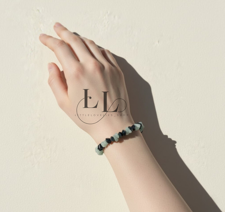 کریستالهای لوکس: کریستالهای تراشخورده سبز تیره که به دلیل درخشش بالا، جلوههای جواهری به دستبند بنگل میبخشند.