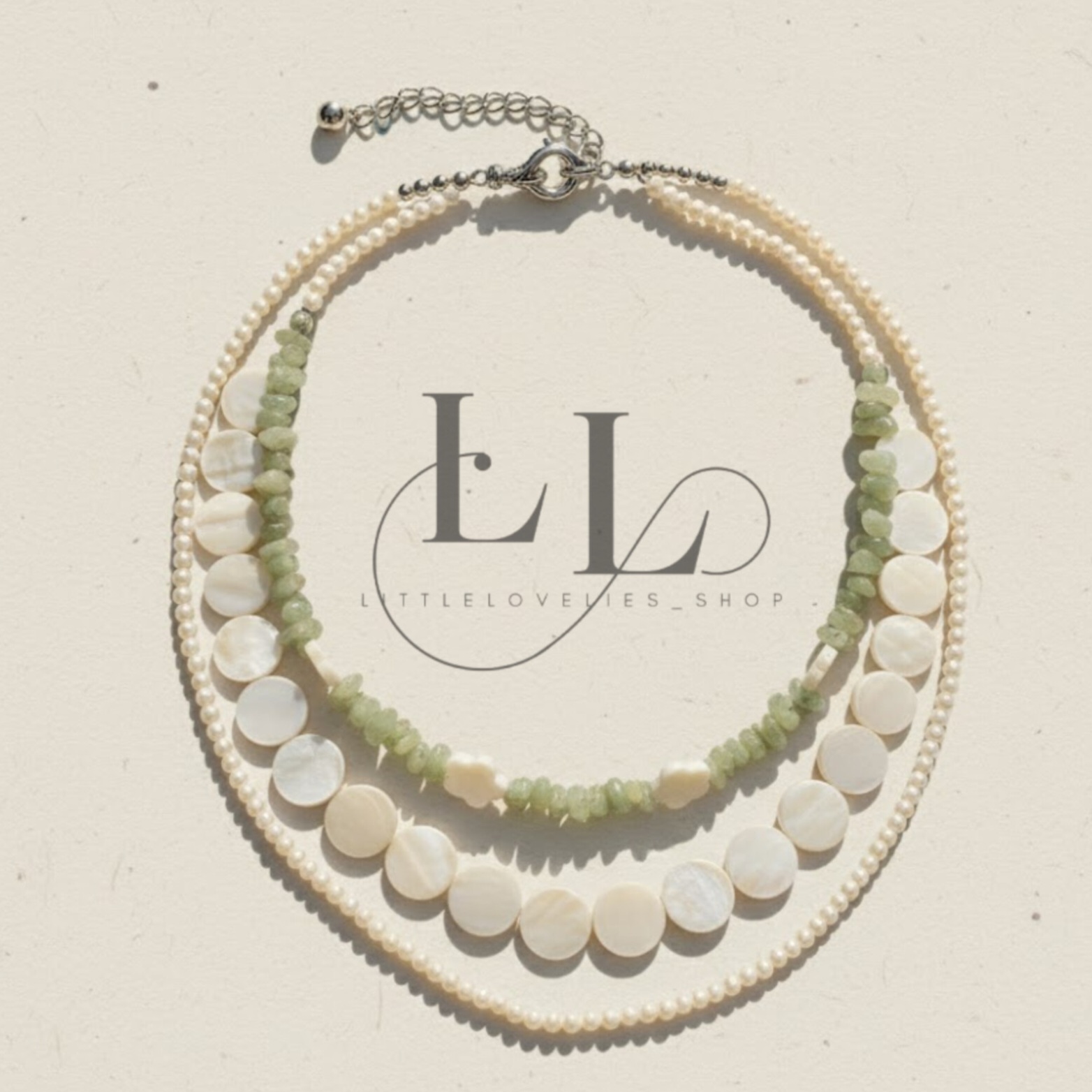 ست گردنبند لایهای سهتایی ما، راهحل نهایی برای داشتن یک استایل شیک و چندلایه بدون زحمت است. این گردنبند مهرهای پرطرفدار، با ترکیب رنگهای سبز پاستلی و صدفی ، کاملاً مناسب پوستهای برنزه و استایلهای شیک است.